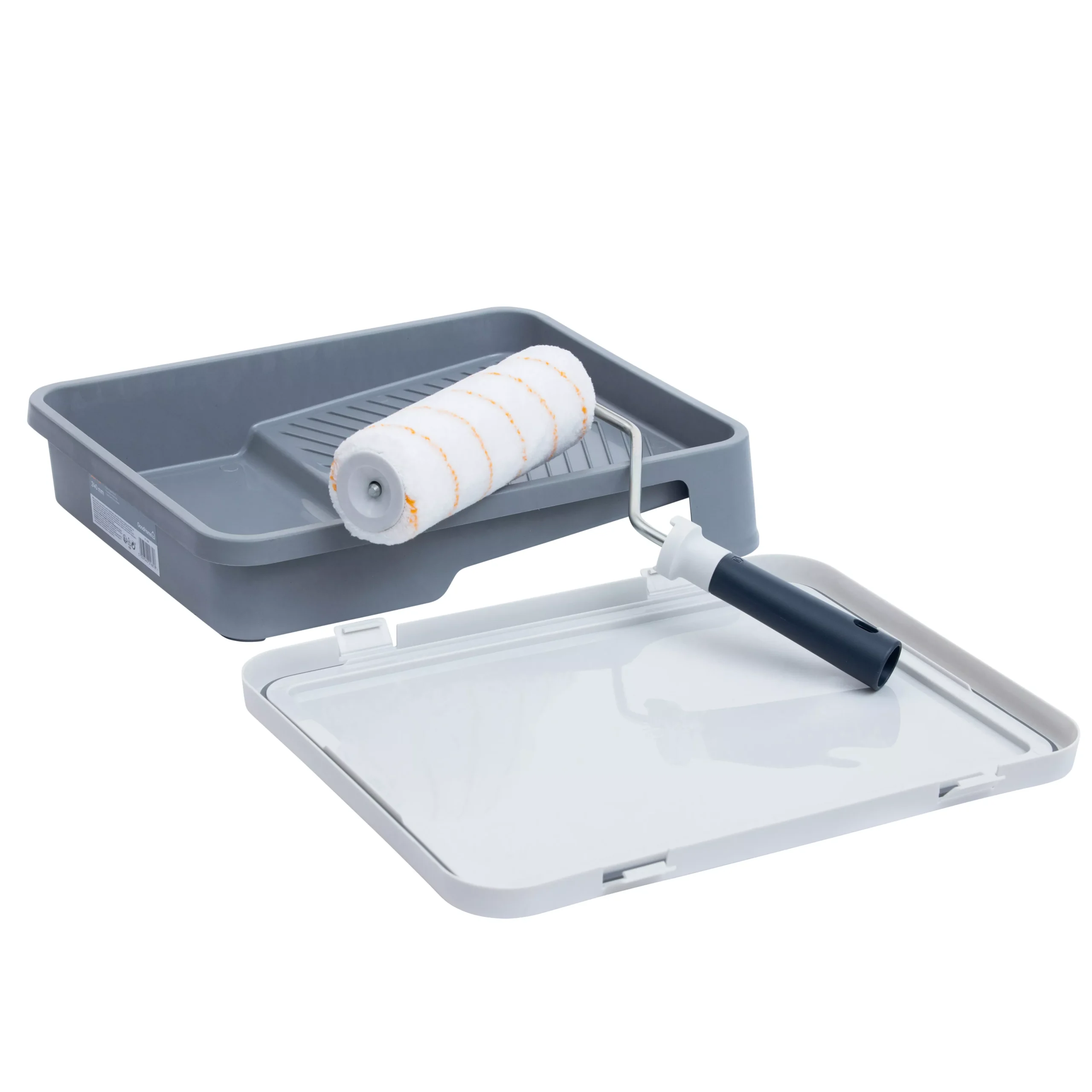 Paint walls, ceilings and wood easily with our 9″ (230mm) GoodHome roller, tray and lid set. The roller tray and lid allows you to pause whilst decorating for up to 7 days without the paint drying. The roller sleeve provides a good finish, paint hold and release capacity, and is an excellent all rounder. It has a large 45mm core diameter for great paint holding capacity for fast work.
